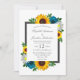 Design apresenta girassóis, rosas e margaridas elegantes com uma paleta de cores amarela, lacrimejante e branca ouro. Design também apresenta uma estrutura de cinza de carvão. Você pode alterar a cor de fundo na parte frontal e na parte traseira para a cor de sua escolha ou deixar ambas definidas como brancas.