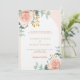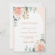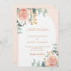 Um convite de casamento elegante. Um fundo rosa dourado e um arco branco colorido. Decorados com rosas de cor aquosa e verde de eucalipto.