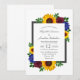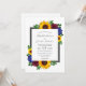 Design apresenta girassóis, rosas e flores silvestres elegantes com uma paleta de cor amarela, burgundy e azul ouro. Design também apresenta uma estrutura de cinza de carvão. Você pode alterar a cor de fundo na parte frontal e na parte traseira para a cor de sua escolha ou deixar ambas definidas como brancas.