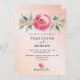 Um fundo rosa dourado e cinza rosa-claro. Rosa cor-de-rosa grande, folhagem com flores ouros pequenas. Personalize e adicione seus nomes e detalhes do casamento. Letras negras. Traseira: Rosa dourado, fundo cor-de-rosa pincelado.