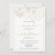 Convite Casamento floral de rosas brancos e de ouro clássi