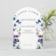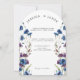O convite para o casamento floral elegante e moderno contém flores azuis e roxas, folhas botânicas verdes de sábado e eucalipto. por favor, encontre mais designs correspondentes na minha loja de "ouros".