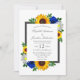 Design apresenta girassóis, rosas e margaridas elegantes com uma paleta de cores de queda amarela, azul e branca ouro. Design também apresenta uma estrutura de cinza de carvão. Você pode alterar a cor de fundo na parte frontal e na parte traseira para a cor de sua escolha ou deixar ambas definidas como brancas.