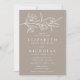 Convites florais elegantes com flores brancas esboçadas e folhas perto do topo do convite com fundo esticado. Personalize o convite de casamento botânico com seus nomes e detalhes de casamento abaixo em letras brancas clássicas. Projetado para coordenar com a nossa coleção de casamento Floral.