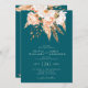 Convite Casamento Floral de Teal Boho Chic, Escuro Elegant