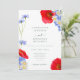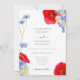 Linda mão pintou aquarelas botânicas de verão flores silvestres em tons verdes azuis amarelos. Flores incluindo flores, margaridas, papoilas e me esqueçam de nãos. Modelo fácil de usar com moderno e elegante roteiro de tipografia. Perfeito para um único casamento botânico e esmeralda verde, temido no verão ou na primavera. Arte original da artista Catherine Sweetman
