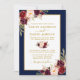 Convite Casamento Floral de Watercolor Burgundy Dourado Az