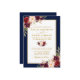 O Convite para Casamento Floral e Azul Dourado da Moderna Elegante Watercolor Burgundy inclui rosas de burlões, rosas cor-de-rosa e verde botânico.
