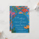 Convite Casamento Floral Desenhado De Mão Azul Laranja Bri