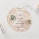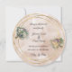 Dois belos buquês florais representando duas noivas em aquarelas. Um círculo geométrico dourado inclui todos os detalhes. Eu coloquei este convite no papel da Kraft para um olhar quente. Se não quiser, escolha entre uma grande seleção de documentos para o seu convite.