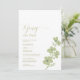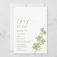 o design mostra flores verdes sábias do lado direito e convite de casamento escrito em verde-oliva do lado esquerdo. este design único e elegante é perfeito para o seu casamento.