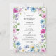 Convite para casamento de flor selvagem com bonito estrutura floral e tipografia elegante. Design floral de aquarelas com flores silvestres e verde em tons de verde-lavanda azul-rosa-rosado e magenta. Moderno, vibrante e colorido este design floral botânico tem o charme e romance de um jardim floral silvestre boêmio. Perfeito para um casamento de boho rústico, tema de festa de jardim e uma multidão de paletas coloridas para um casamento de primavera, outono ou verão. Para coordenar convites, artigos de papelaria, jogos e decoração do dia do evento, por favor, navegue na minha Coleção de Casamentos do Jardim de Flores Selvagens ou me mande mensagens para adicionar quaisquer itens adicionais de que você precise.