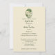 Trabalho de arte em matizes pastéis que retratam elegantes natas e flores brancas de hydrangea com seus botões em um fundo verde mudo decora um lado deste convite junto com texto verde que é fácil de personalizar para seu casamento ou outro evento em um fundo amarelo pálido no verso.