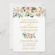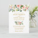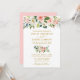 O Convite para Casamento Dourado e Floral de Blush Cor de Água Elegante Moderna inclui rosas rosa, flores brancas e verde botânico.