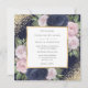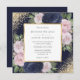 Convite Casamento Floral Dourado com Blush Marinho Azul El