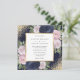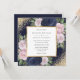Marinho azul e azul escamoteado convite floral com rosas azuis e cor-de-rosa escamoteando os detalhes do casamento dentro uma armação de ouro adornada com ouro brilhante./confetti.