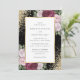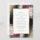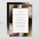 Um convite de casamento floral, preto, burgundy e branco, cor-de-rosa elegante, com flores rosas e roxas, que delineiam os detalhes do casamento, dentro, um quadro de ouro enfeitado com o confete dourado. Itens correspondentes disponíveis.