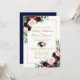 Chamada Dourada de Casamento Elegante Burgundy Marsala e Blue Floral - Script Dourado, Blue Back