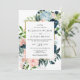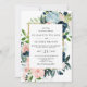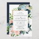 Marinho Rustic Watercolor Blush Dourado Convite De Casamento Floral. Buquê de flores azuis e roscas do Marinho com destaque Dourado