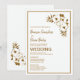 Convite Casamento Floral Dourado de Cerimônia e Recepção