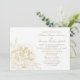 Elegante design de convite para o casamento de peônias com um olhar desenhado à mão. As cores incluem latte/champagne peony, fundo branco e antigo texto dourado. Use o recurso "personalizar" para editar o texto (posição, tamanho, fonte e cor).