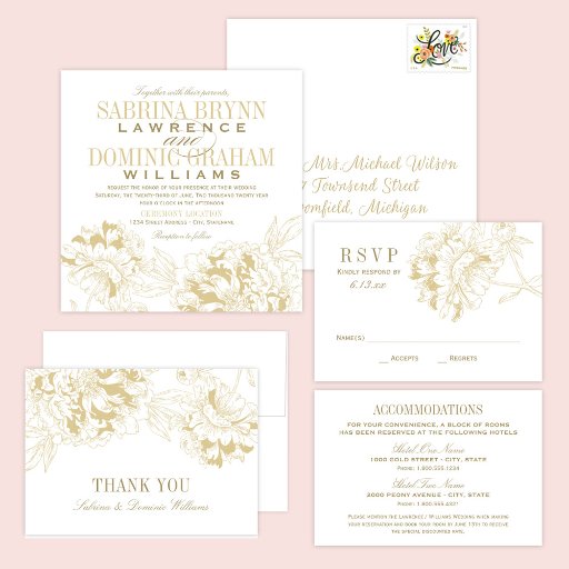 Elegant Champagne Gold Floral Peony WeddingCriado por Kat Fusinski