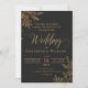 Convite Casamento floral Dourado e negro