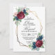 Convite Casamento Floral Dourado Geo Marinho Burgundy