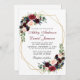 Convite Casamento Floral Dourado Geométrico de Borgonha Az