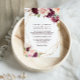 Este convite para o casamento floral com borboleta verde-dourada é perfeito para um casamento rústico. O design apresenta buquês de flores elegantes, verdes, esbranquiçados, roxos, vermelhos e burlões desenhados à mão, adorando quadros geométricos dourados, classe inspiradora e beleza.