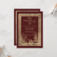 Um convite de casamento clássico tradicional com caligrafia manuscrita dourada elegante, flores de renda glamour burgundy e glitter dourado com bordas elegantes é perfeito para qualquer garota sofisticada e elegante. Este design é ideal para um evento de casamento moderno e estiloso. Personalize este design com sua mensagem e informações personalizadas. Todos os designs são impressos.