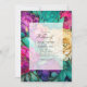 Convite Casamento Floral Dourado, Rosa-Quente e Emerald