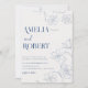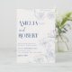 Convite Casamento floral e botânico azul mínimo