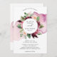 Aprecie seus convidados com este belo convite botânico mostrando seus nomes com delicada mancha aquática em cascata atrás de um belo buquê floral com flores em uma bela mistura de morango, burgundy, blush e tons de rosa. Moldura circular com detalhes falsos de ouro rosa. Mancha de aquarela em bagas, borboletas e matizes escamosos. O cartão elegante voltou com mancha aquosa e detalhe floral como a frente. Parte da nossa coleção "Romance Floral" com uma variedade de produtos de coordenação disponíveis. Visite a coleção completa clicando no link abaixo "Outros produtos desta coleção".