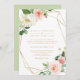 Este convite de casamento floral geométrico e elegante, verde e ouro é perfeito para um casamento rústico. A design apresenta rosas brancos, cor-de-rosa e pincéis pintados à mão e um toque de verde, adoráveis quadros geométricos de ouro, inspiradora beleza artística.