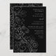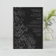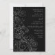 Este elegante convite para o casamento apresenta um delicado design floral ornamental com flores, aves e folhas sobre fundo prateado e preto. O texto combina o script manuscrito e as fontes serif para uma aparência na moda e moderna.