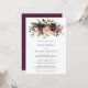 O legante cai floral Convite para Casamento com flores pintadas a aquarelas na parte profunda e rica do vinho burgundy com tom roxo. Abaixo estão seus detalhes de casamento em um formato moderno.
