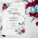 Convite Casamento floral em aquarela azul e Borgonha em br