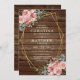 Convites de casamento rústico country em aquarela delicados e elegantes em rosa bege, rosa poeirento com cores de folhagens. Moldura de design moderno em dourado falso e fundo de painel de madeira falso. Convites editáveis, DIY. Monogramas dos noivos em guirlanda. Todas as cores e textos podem ser alterados / editados. Entre em contato com o designer para outras variações. Veja outros itens da coleção de casamento 'CHRISTINA'.