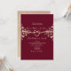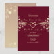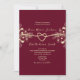 Faça uma declaração ousada e romântica com este convite de casamento vintage inspirado em burgundy e dourado, apresentando uma mistura de arte floral vintage, Toile francesa e Chinoiserie. Este design elegante apresenta detalhes florais dourados delicados, inspirados em padrões clássicos de Toile, juntamente com um motivo de coração único que adiciona um toque de charme atemporal. Perfeito para casamentos sofisticados de outono ou inverno, captura a essência do romance refinado.