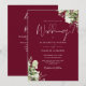 Convite Casamento Floral em Verde com Código QR em Borgonh