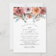 Aprecie amigos e família com este belo convite de casamento floral de aquarela. Flores lindíssimas em cima com flores e folhagem numa delicada mistura em rosa, marfim, pêssego, azul de ardósia, cinzas e tons de sábio. Detalhes da caligrafia moderna. Traseira da carta em uma lâmina elegante/sombra azul turva e poeirenta. Parte da nossa coleção de Casamentos e eventos "Ereal em Azul Dusty".