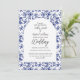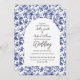 Azul clássico e branco floral rústico toile de jouy convite para o casamento