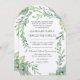 Convites De Casamento Floral De Cor Verde E Azul. Cinza com blues macios e folhas verdes com tudo feito em textura macia para um design floral romântico neste convite de casamento rústico, mas elegante. Azuis que vão do marinho ao azul claro e verdes que vão do limão, do chartreuso e do silvo verde e menta. Folhas de samambaia suavemente onduladas para a frente e para trás também misturadas com folhas das flores para uma variedade de formas de folha.