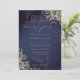 Este convite de casamento gótico elegante pode ser personalizado com suas informações em tipografia dourada sofisticada com suas iniciais monogramadas no verso em um fundo azul meia-noite. Projetado por Thisisnotme©
