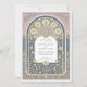 Este belo convite para o casamento mostra uma design surpreendente profundamente enraizada nos movimentos Artes e Artesanatos e Arte Nouveau tardia. A sofisticada paleta de cores apresenta azuis empoeirados, cremes mutados, amarelos claros e castanhos macios, criando um sentimento de colheita e eterno. A borda externa exibe um padrão delicado em branco-claro, rosa e azul. O painel arquitetado central é generosamente adornado com motivos botânicos estilizados. Creme proeminente e flores amarelas pálidas do tipo anêmona, ou possivelmente madeira de madeira ou celeiro estilizada, com centros intricadamente detalhados, são um elemento-chave. Estas são complementadas por flores amarelas pálidas e mais pequenas e encantadoras e aglomerados de minúsculas flores azuis e brancas de sotaque, lembrando-me-nots, todas entrelaçadas com folhagem abundante amarelo pálido e azul empoeirado. O design é rico em padrões intrincados, incluindo um medalhão decorativo acima da área de texto, e bordas em camadas que combinam precisão geométrica com linhas orgânicas e fluentes. O efeito geral é de elegância refinada, artesanato artístico, e charme de safra romântico, perfeito para casais que apreciam design detalhado e eterno. O verso fornece um espaço dedicado para "Os Detalhes Mais Finos", mantendo a elegante estética e assegurando que todas as informações necessárias sejam belamente apresentadas.