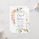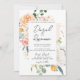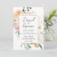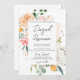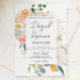 Lindo convite floral emoldurado com flores laranja, pêssego, rosa e detalhes em dourado