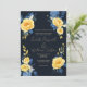 Um buquê exuberante de florescentes amarelos puxados à mão entrelaçados com flores de marinho profundo e verde cria um contraste ousado mas orgânico contra um convite de casamento para o fundo do marinho. A escrita elegante ou a tipografia serif moderna em branco, folha de ouro ou amarelo-borboleta melhora o trabalho de arte botânico, mantendo a legibilidade e a sofisticação. Os grupos florais muitas vezes enquadram os cantos ou os lados de forma assimétrica, emprestando um sentimento boho-chic que se sente livre-espirituoso e cuidadosamente curado. Ideal para casais que amam cores vibrantes e arte orgânica — estes convites se sentem divertidos, mas refinados, perfeitos para um jardim de verão ou celebrações rústicas ao ar livre.