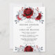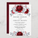 O Elegante buquê vermelho-real de prata convite com elegante de vermelho-rubi real, cremson, prata, flores brancas puras de rosa e folhas verdes de eucalipto. Entre em contato comigo para obter ajuda sobre a personalização ou se você precisar de outro produto com este design.
