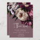 Faça uma declaração com nossos incríveis convites de casamento, com burgundy hiper-realista e peonias brancas-creme, lírios, híbridos, e um belo conjunto de flores mauve, brancas e roxas, elegantemente aninhadas em meio a uma folhagem verde profunda. Com um fundo em massa empoeirada, nossa design dá o tom perfeito para sua celebração romântica. Nosso título de script moderno adiciona um toque de sofisticação e estilo, enquanto o texto simples do sans serif branco mantém o foco no seu dia especial. Quer você esteja planejando um caso lento ou uma reunião íntima, esta design certamente impressionará seus convidados e dará a palco para uma experiência de casamento verdadeiramente inesquecível. Criado pela imprensa simplesmente de farmácia.